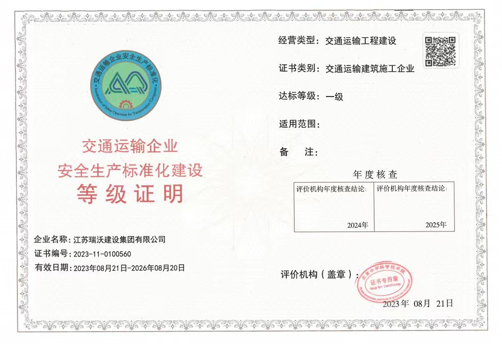 江蘇瑞沃建設(shè)集團(tuán)有限公司成立于2007年,是一家以市政、交通工程建設(shè)為主導(dǎo),集房屋建筑、交通安全設(shè)施、城市道路照明工程、電力工程、隧道工程、航道工程及投融資為一體的綜合性企業(yè)。企業(yè)注冊(cè)資本60000萬元,現(xiàn)有各類技術(shù)人員580人,其中中、高級(jí)以上人員498人,注冊(cè)類人員268人,一、二級(jí)建造師166人。公司榮獲“江蘇省建筑業(yè)優(yōu)秀企業(yè)”、“江蘇省五一勞動(dòng)獎(jiǎng)狀”,連續(xù)多年被評(píng)為“揚(yáng)州市先進(jìn)企業(yè)”、“江蘇省建筑業(yè)百?gòu)?qiáng)企業(yè)”,連續(xù)八年蟬聯(lián)百?gòu)?qiáng)企業(yè)基礎(chǔ)設(shè)施類第一名。